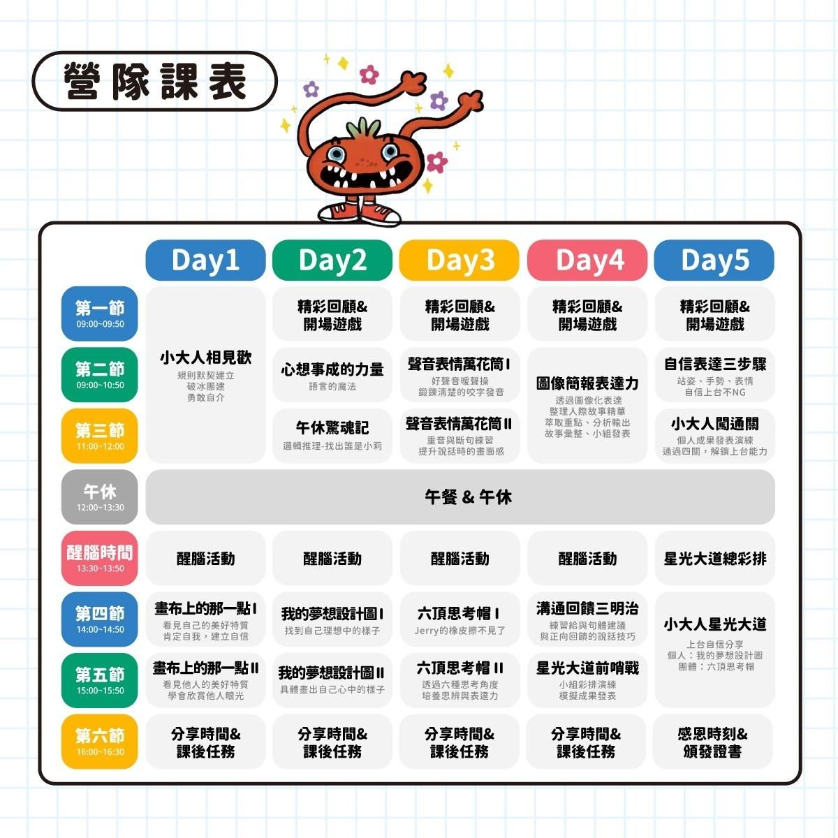 在這個獨特的夏令營中,我們將透過精心設計的主題課程,讓孩子們在故事引導中提升這些關鍵能力!
