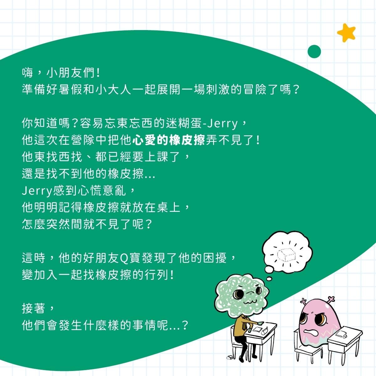這次的主角是小大人原創故事「Jerry的橡皮擦不見了」!